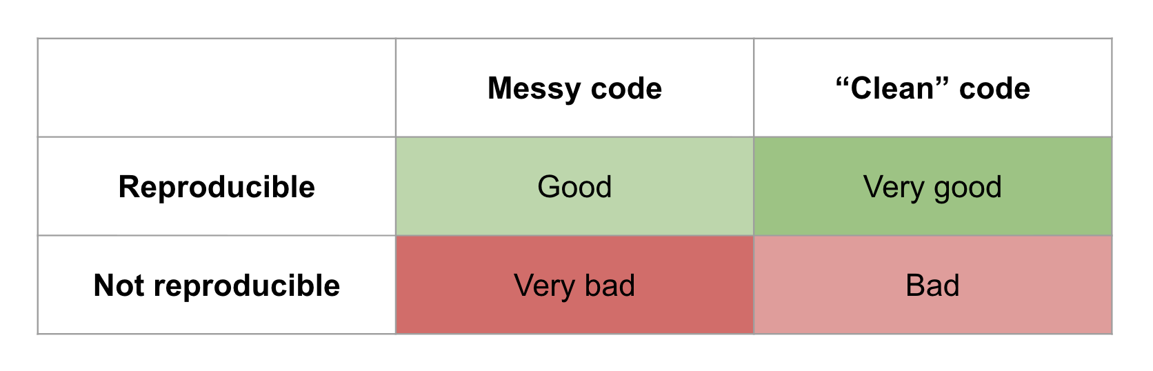These days, the open science movement has made code and data sharing more appreciated and more common, which is a great achievement, but often what is shared—sometimes called a “repro pack”—is not single-button reproducible. In fact, in most cases what’s shared is not reproducible at all, hence why it’s called a reproducibility crisis.