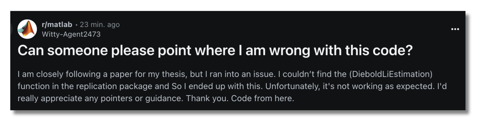 If CR practices make it easy to get set up and run a project, and again, the thing actually works, perhaps the next study can be done more quickly. At the very least, the new project owner will not need to reinvent the wheel in terms of project structure and tooling. Even if it’s just one day per study saved, imagine how that compounds over space and time. I’m sure you’ve either encountered or heard stories of grad students being handed code from their departed predecessors with no instructions on how to run it, no version history, no test suite, etc. Apparently that’s common enough to make a PhD Comic about it: